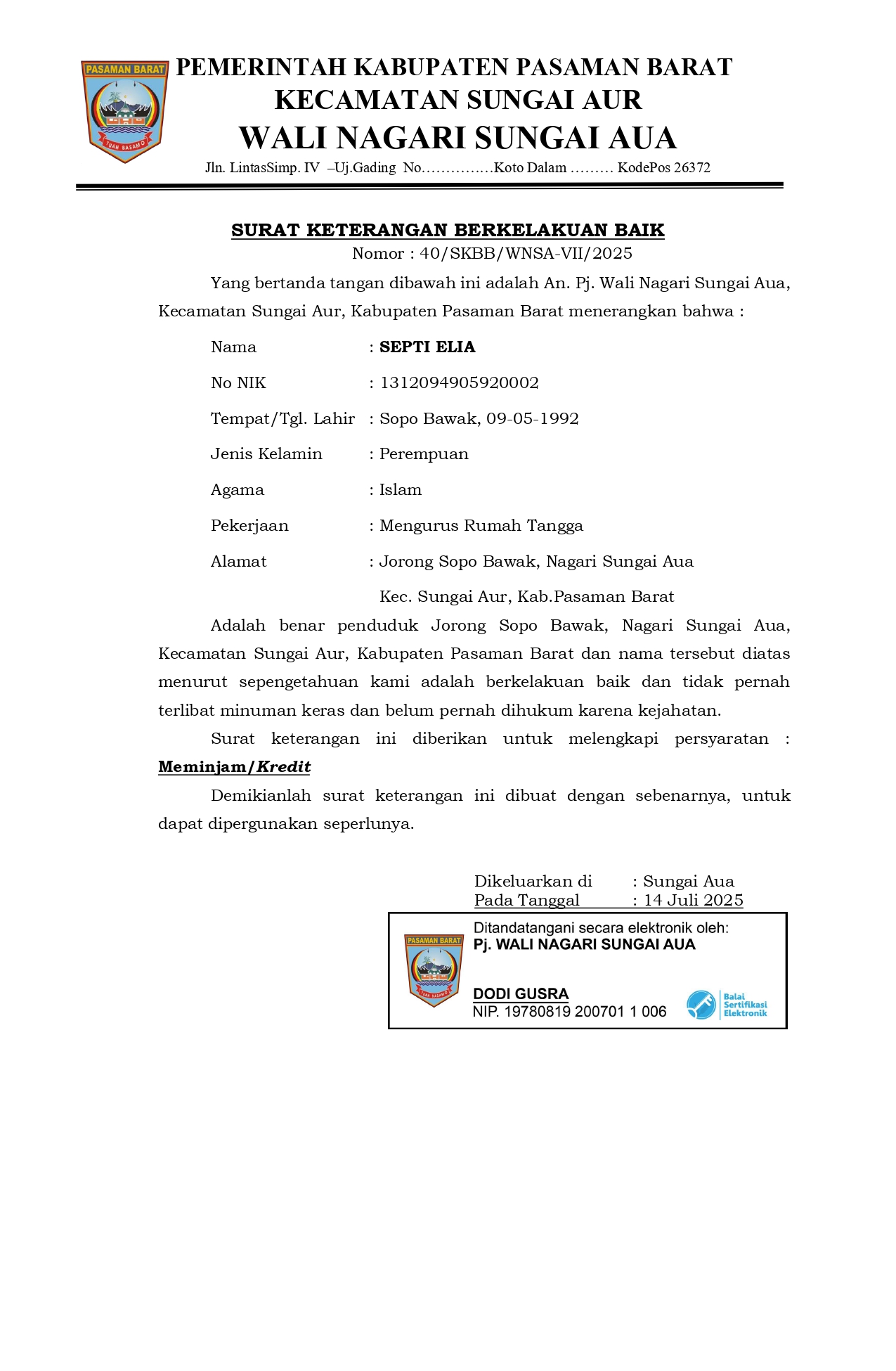 Inovasi ini hadir sebagai solusi atas kondisi geografis Nagari Sungai Aua yang memiliki tujuh wilayah kejorongan dengan tingkat aksesibilitas yang beragam. Empat jorong—Koto Dalam, Koto Dalam Jaya, Bukit Harapan, dan Tanjung Babolik—secara geografis berada dekat dengan pusat pemerintahan nagari, sehingga relatif mudah dalam mengakses pelayanan administratif. Namun, tiga jorong lainnya—Bayang Tengah, Sopo Bawak, dan Bukit Malintang—berlokasi cukup jauh dari pusat pemerintahan dan terpisah secara geografis oleh wilayah Kecamatan Gunung Tuleh. Kondisi ini sering kali menjadi kendala dalam pelayanan administrasi karena memerlukan waktu, tenaga, dan biaya lebih bagi masyarakat di ketiga jorong tersebut untuk datang langsung ke kantor nagari.